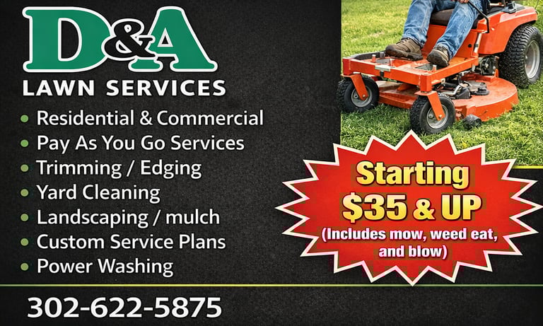 Serving Delaware with care, D&A Lawn Services brings your outdoor spaces to life for homes and businesses alike.